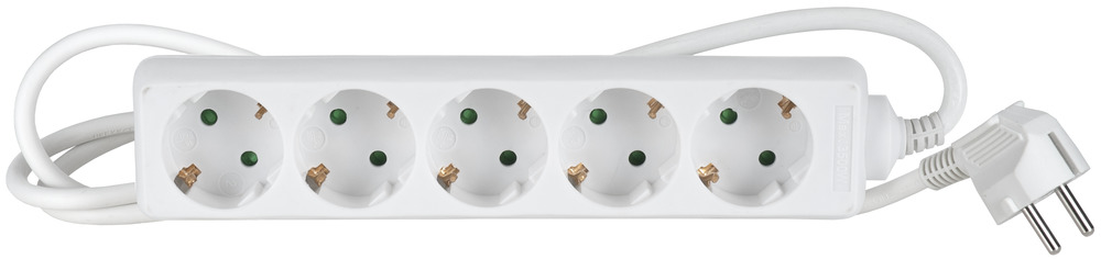 5-osainen jatkojohto sisäkäyttöön - johdon pituus 1,5 metriä - kaapeli H05VV-F 3 x 1,5 mm² - suojausluokka IP20 - väri valkoinen
