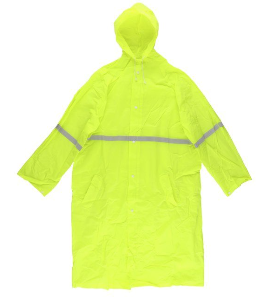 Hupullinen sadetakki on valmistettu kestävästä PVC-materiaalista. Sadetakissa on heijastavat painatukset. Yksi koko.