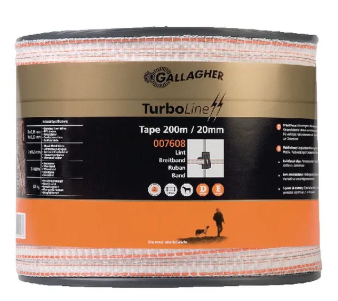 Gallagher TurboLine -aitanauha soveltuu hyvin pysyviin yli 500 metrin pituisiin aitoihin. TurboLine-nauhassa on vahvistetut, virtaa johtavat punaiset reunalangat. Aitanauha johtaa sähköä 40 kertaa paremmin kuin tavallinen PowerLine-aitanauha. Aitanauhalla on 5 vuoden UV-kestävyystakuu.