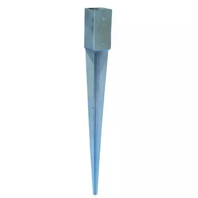 Galvanoidusta teräksestä valmisettu maakiila tolppaa varten. - ainevahvuus 1,8 mm - reikien halkaisija 11 mm - 2 + 2 reikää - mitallistetulle sahatavaralle