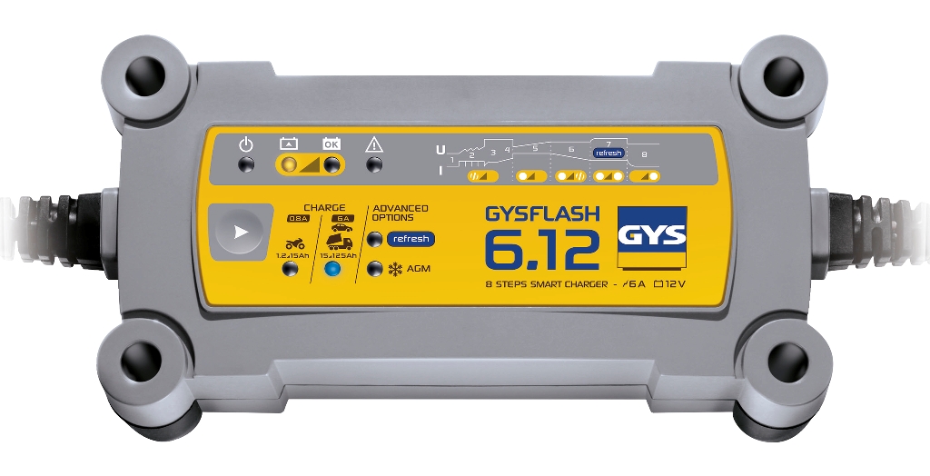 GysFlash 6.12 on 12 V akkujen lataamiseen suunniteltu akkulaturi; sillä lataat esimerkiksi henkilöautojen, moottoripyörien ja -kelkkojen akut. GysFlash 6.12 akkulaturi soveltuu 1,2-125 Ah:n akkujen lataamiseen, ja 1,2-170 Ah:n akkujen ylläpitolataamiseen.