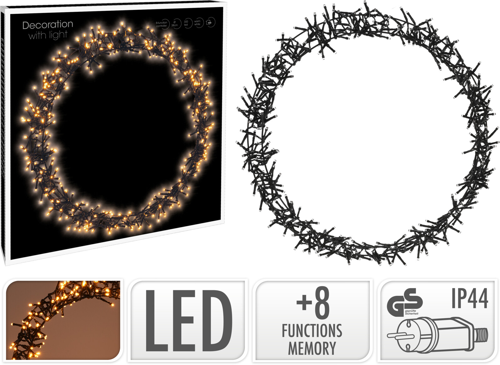 keskikokoinen led-valokranssi - halkaisija 48 cm - 400 led-lamppua - 8 eri valotoiminnolla - IP44
