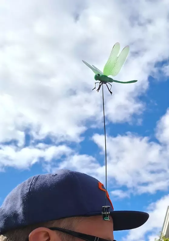 Sudenkorennon mallinen hyönteispelätin. Pelätin kiinnitetään klipsillä esim. lippalakkiin, terassikalusteisiin jne. mm. paarmat välttelevät sudenkorentoja, joten aidon näköinen hahmo pitää... Lue lisää