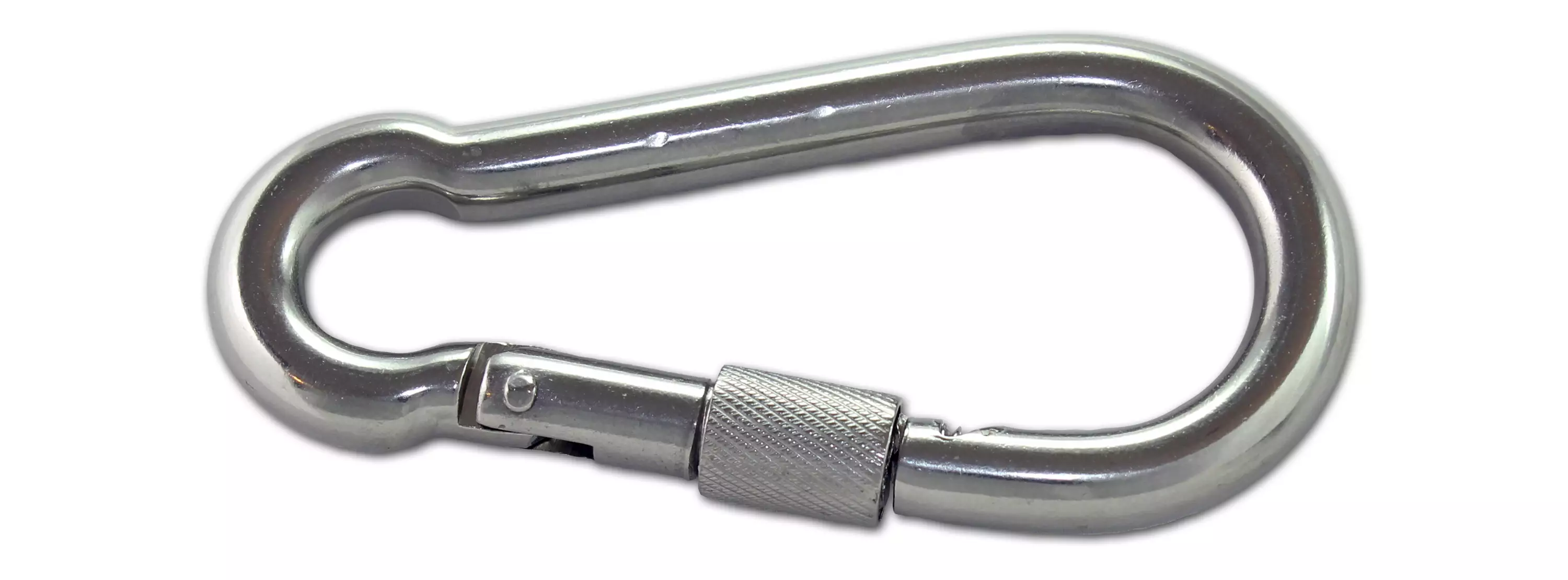 Haponkestävästä teräksestä valmistettu merivedenkestävä lukittava karbiinihaka.