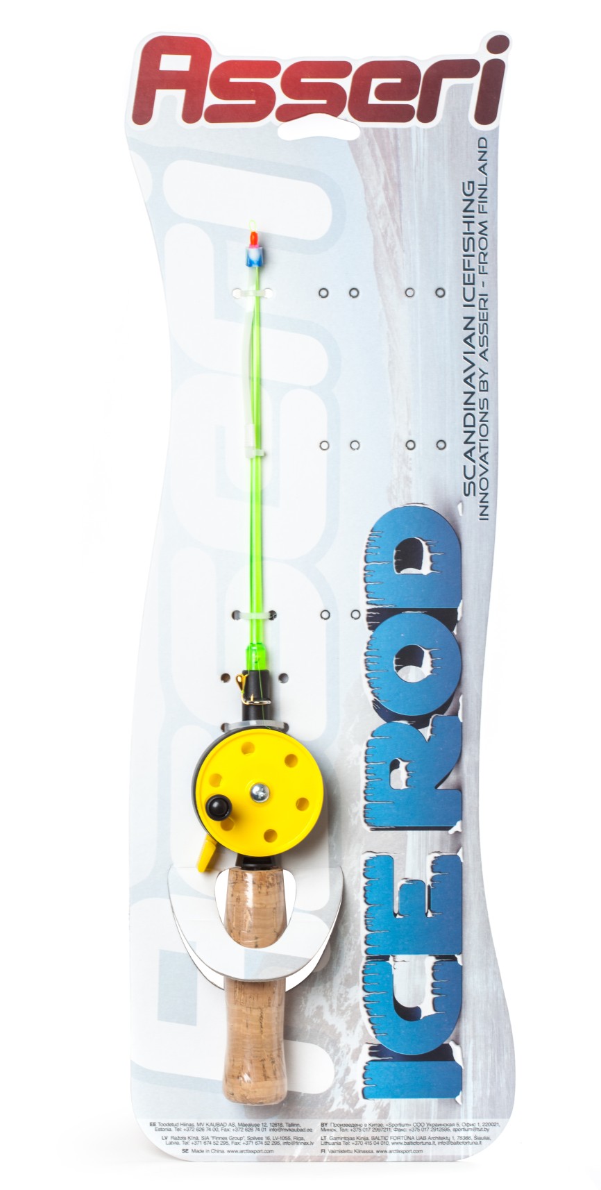 Asserin ”Morri Combo” on valmis setti mormyskalla pilkintään. Settiin kuuluu korkkikahvalla, 50 mm:n kelalla ja filmikärjellä varustettu vapa sekä siima ja volframi-morri