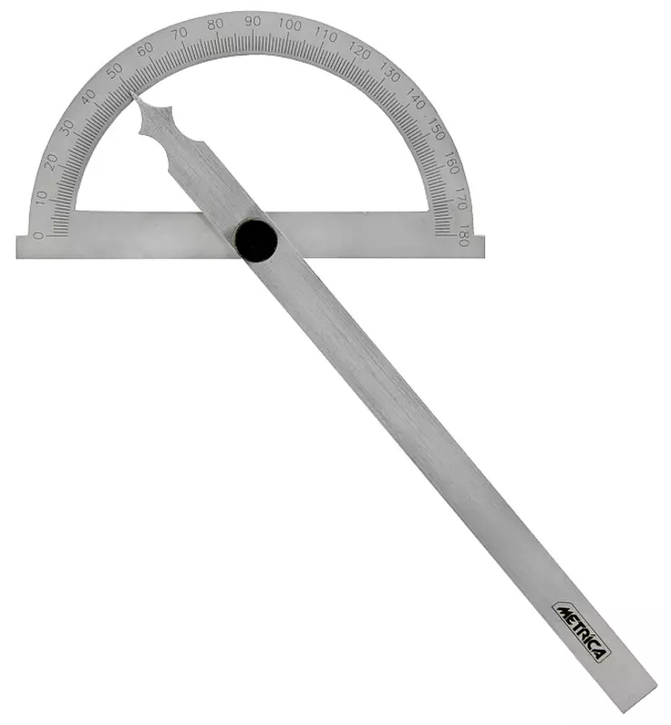 -karan pituus 200 mm -astelevyn halkaisija 150 mm -kiillotettua terästä -lukitusruuvi -mitta-alue 0 - 180 astetta