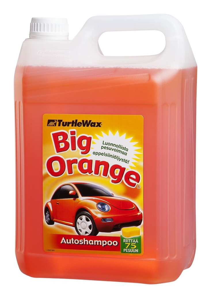 Luonnollista pesuvoimaa appelsiiniöljystä! Big Orange Autoshampoo on vaahtoavia puhdistusaineita ja sitrusöljyn luonnollista pesuvoimaa sisältävä auton pesuaine. Suorituskyvyltään ainutlaatuinen pesuaine, joka ei vahingoita auton vahapintaa. Vesi helmeilee pois puhtaalta maalipinnalta ja kiiltoa lisäävät aineet viimeistelevät sen kauniisti. Sopii kaikille maalipinnoille. Antaa kevyen kiillon. Pakkauskoko 5 L.