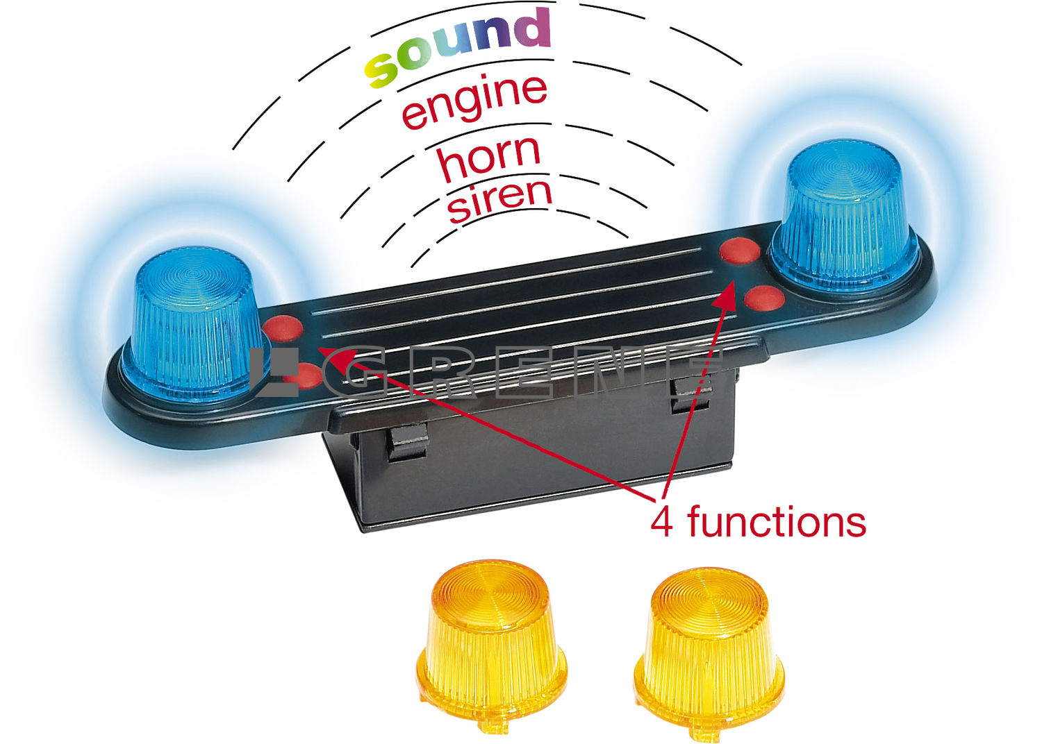 - sisältää paristot ja sekä keltaiset että siniset vilkut