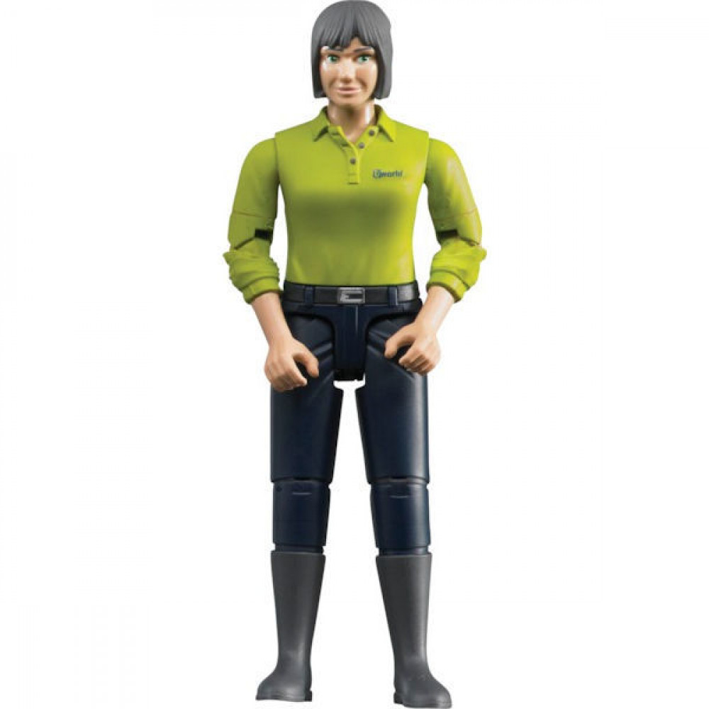 Bruder nainen, vaalea iho - tummansiniset housut - limenvihreä paita - mittasuhde 1:16