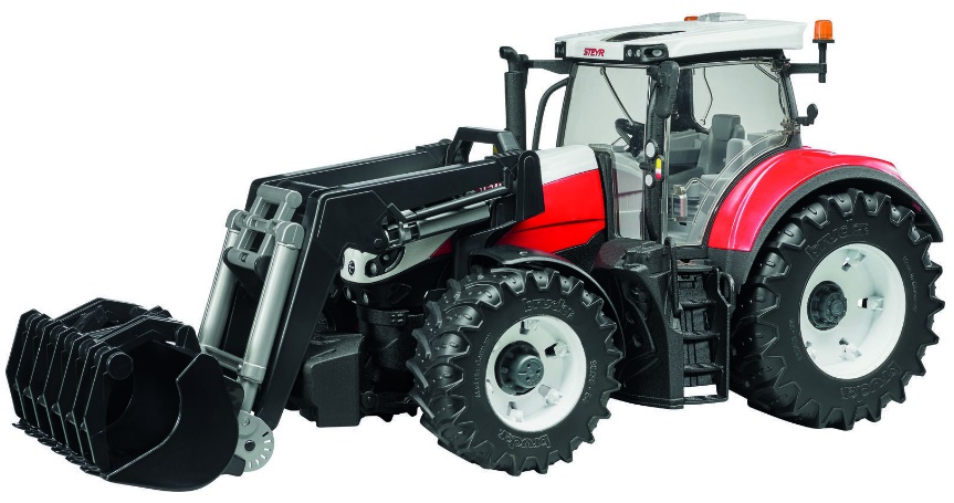Bruder-traktori etukuormaajalla ja lukuisilla muilla yksityiskohdilla.