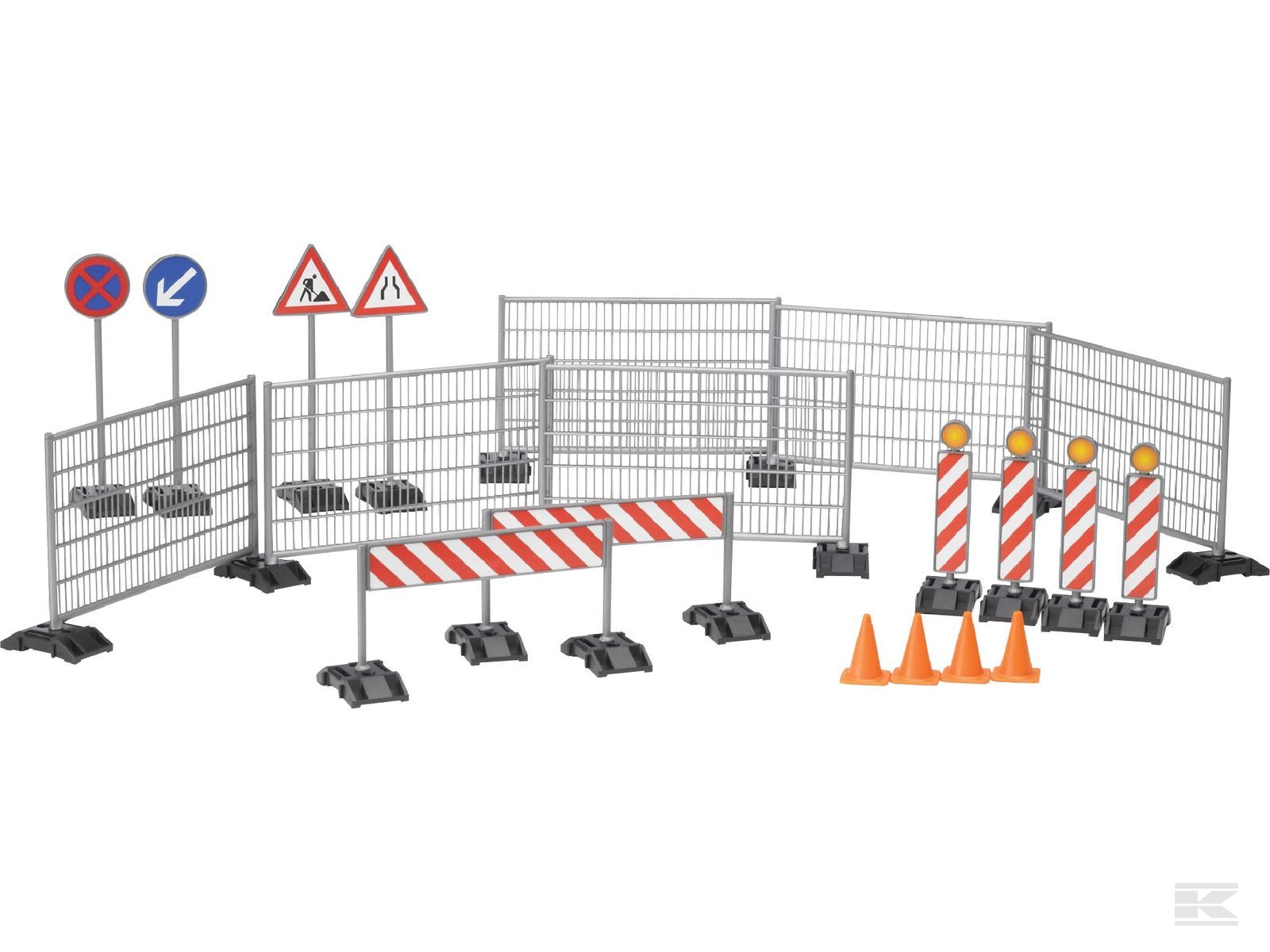 Bruderin Profi-sarjan tarvikesarja "maantie". Sarjaan sisältyy esimerkiksi aitoja, varoituskartioita, varoitusvaloja ja liikennemerkkejä.