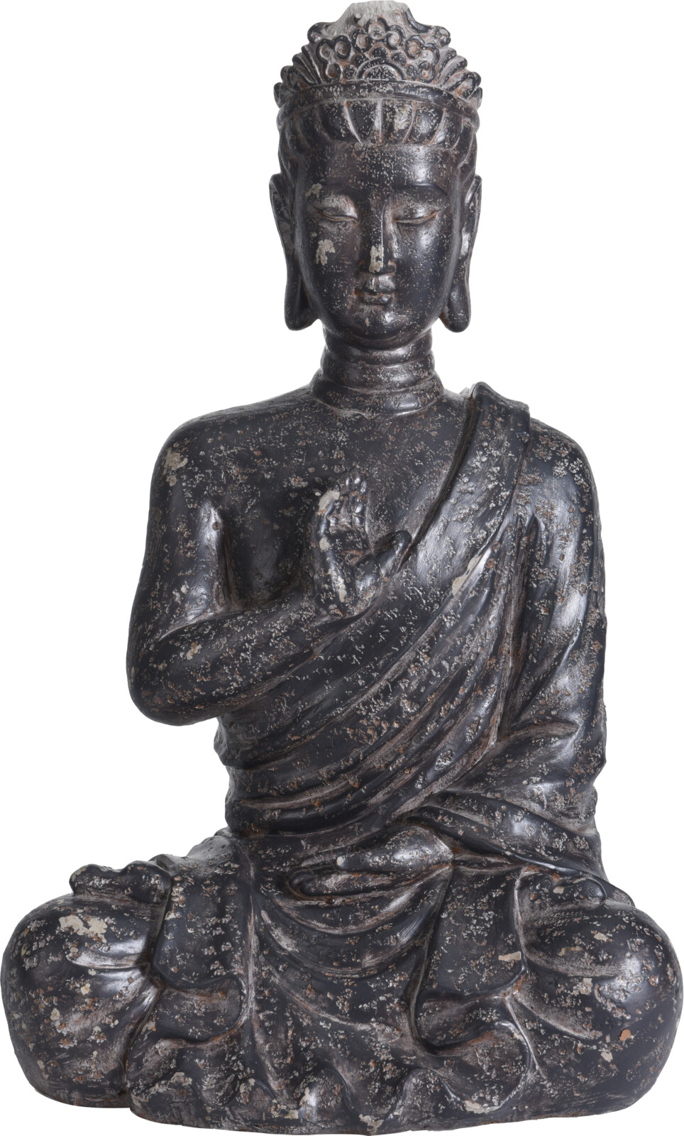 Istuva Buddha-patsas - hieno tumma rosoinen pinta - pohjan leveys 25 cm - korkeus 41 cm - paino 3,9 kg