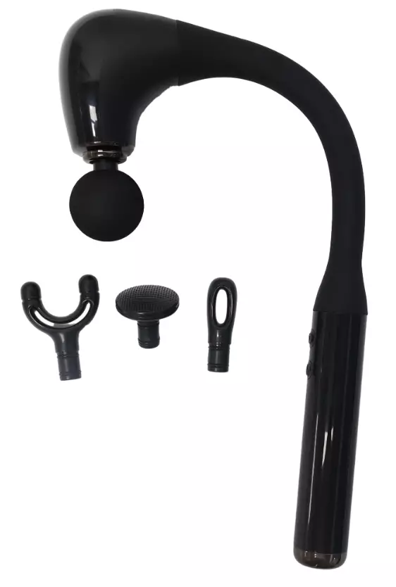 Kaarevalla pitkäkahvaisella hierontapistoolilla vapautat lihasjännityksen tehokkaasti.