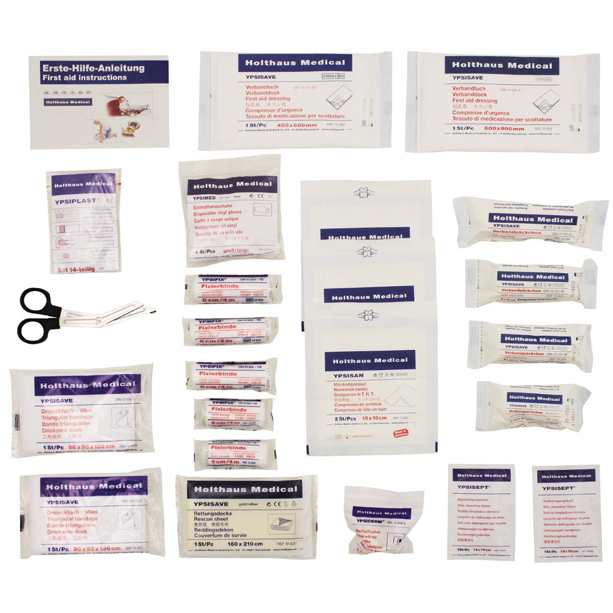 * 1 ensiapupaketti, 10 x 12 cm, DIN 13151-G