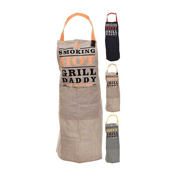 Esiliina tekstillä: Smoking Hot Grill Daddy - puuvillainen esiliina nahkatehosteilla - helman leveys: 60 cm - etukappaleen pituus: 84 cm - saatavana värit: musta, vihreä ja beige... Lue lisää