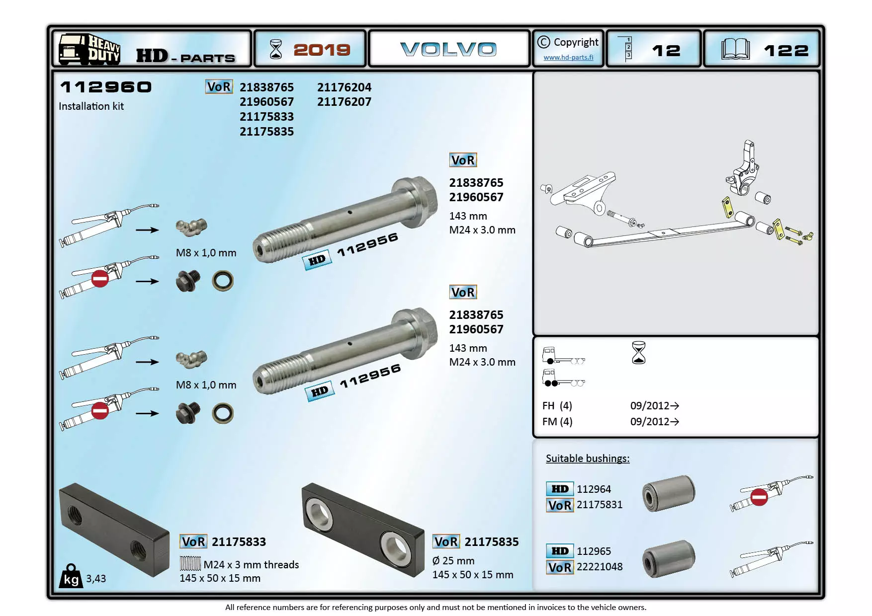 Volvo-yhteensopiva. Sarja sisältää osat numero 20467733, 20467735, 21838765, 21176204, 21960567, 21176207, HD nipple, HD plug