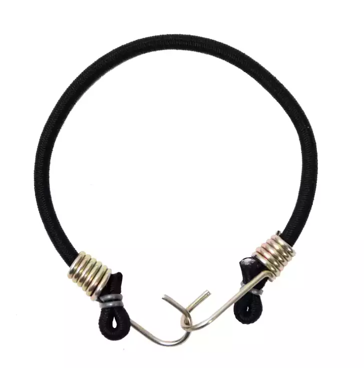 Materiaali: musta pyöreä nauha latex/kumi, kiiltävät koukut metallia
