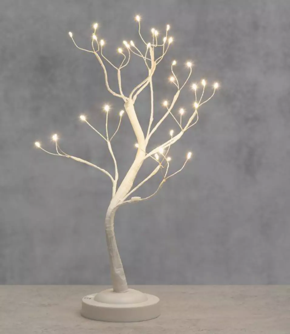 Pieni paristoilla toimiva valopuu. Korkeus 43 cm. Ajastintoiminto 6h on/18h off. Paristot 3 x AA (ei sisälly). Leveys20 cm Syvyys20 cm Korkeus43 cm Paino0,17 kg Värivalkoinen Materiaalikupari, PVC... Lue lisää