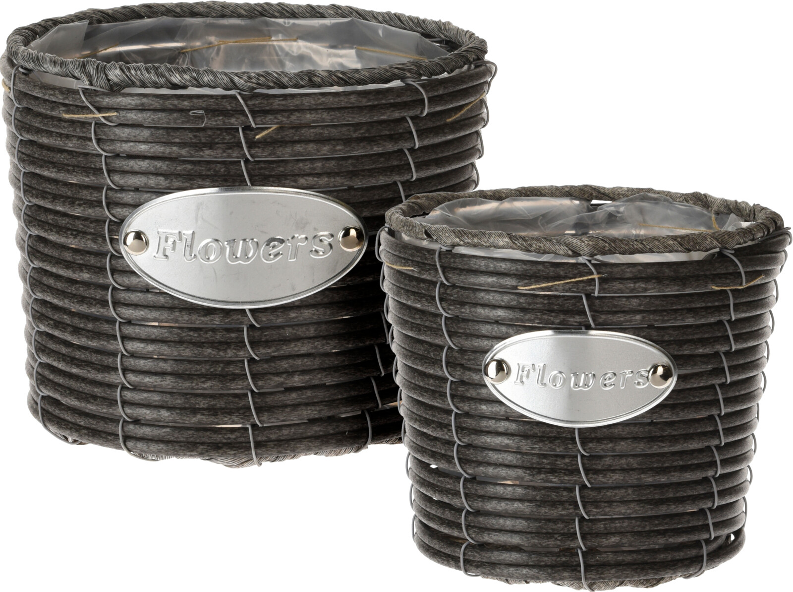 tummat koriruukut muovitetulla sisuksella - varustettu kromin värisellä Flowers -kyltillä - saatavana 2 kokoa Pienempi, mitat noin: - ulkokorkeus 14 cm - ulkohalkaisija 16 cm - sisäkorkeus 13 cm -... Lue lisää