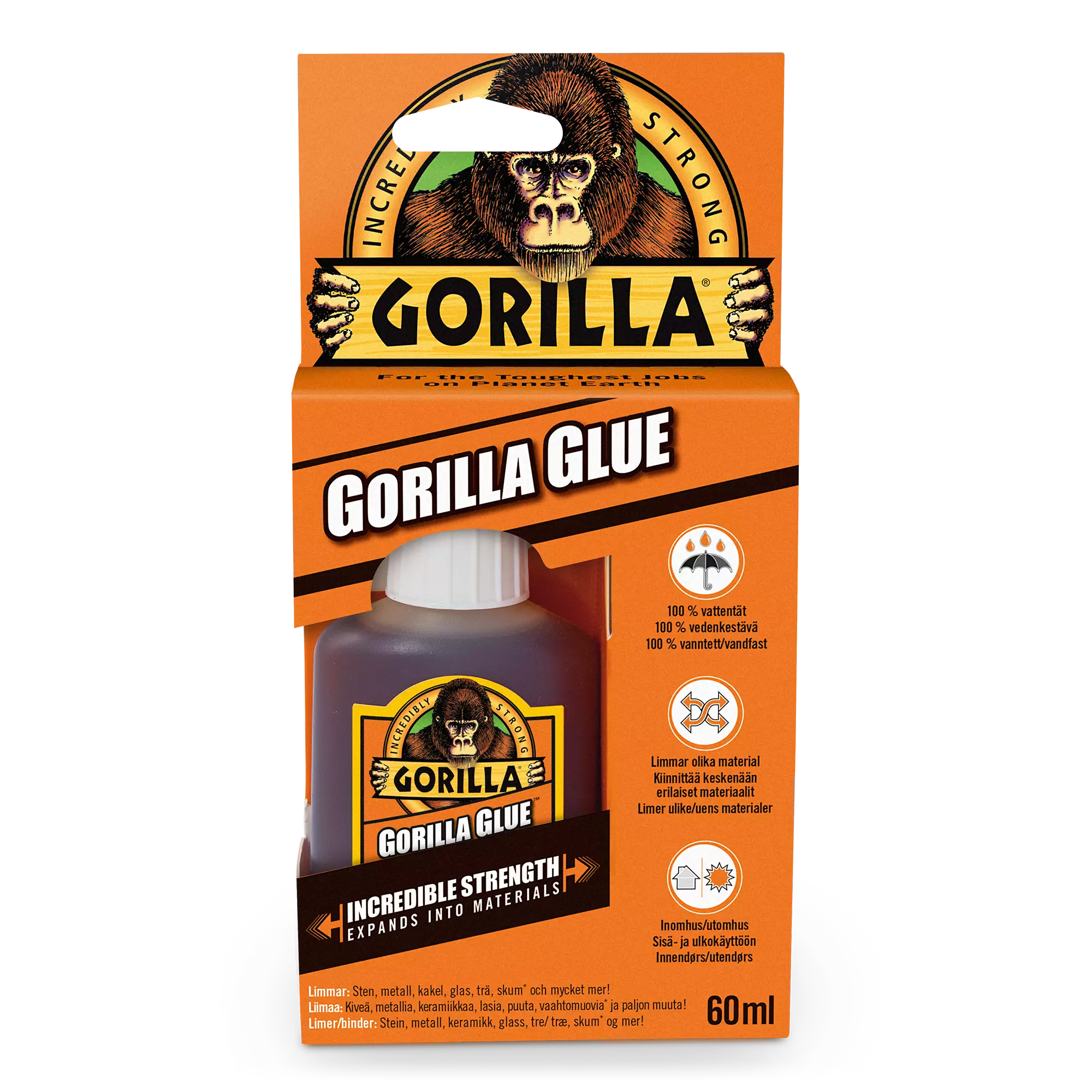 Uskomattomasta lujuudestaan ja monikäyttöisyydestään kuuluisa alkuperäinen Gorilla Glue on 100 % vedenkestävä ja kestää äärilämpötiloja.