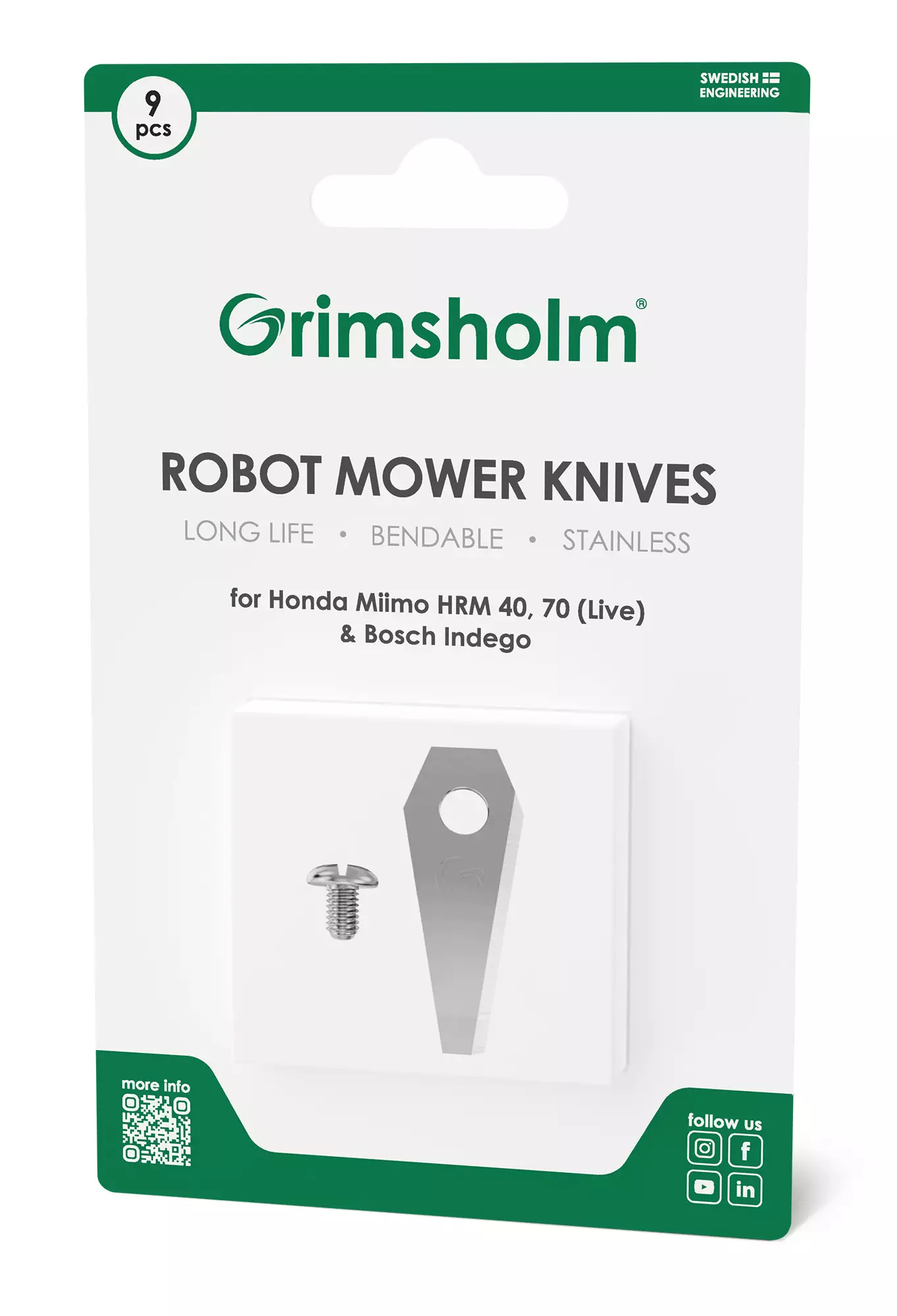 - pakkauksessa 9 kpl varateriä Bosch Indego ja Honda Miimo-robottileikkureihin