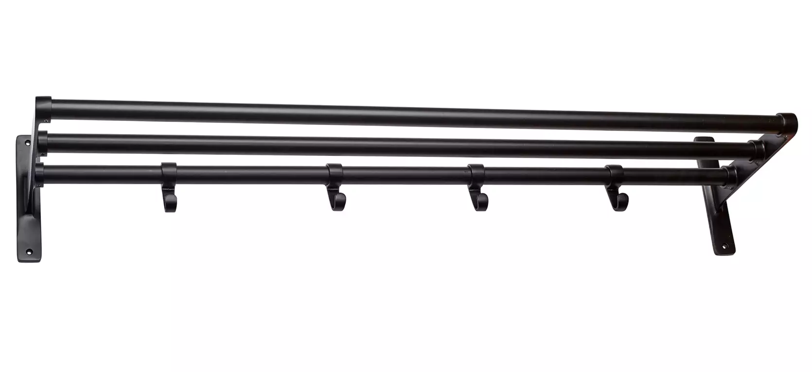 naulakko, kiinnike ja koukut alumiinia - putket muovipinnoitettua terästä - toimitus osina - ulkonema 80 mm - naulakon leveys 1000 mm ja korkeus 185 mm