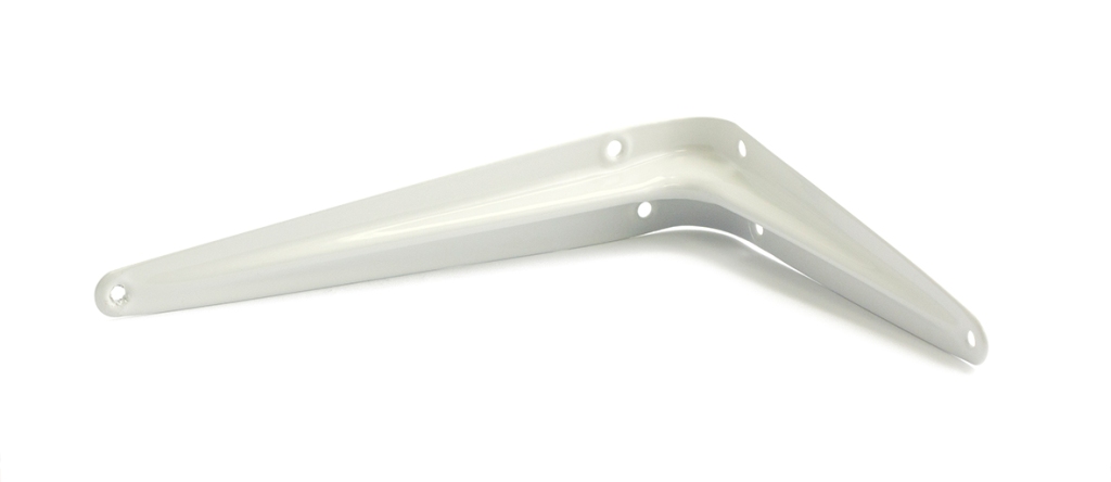 Valkoiseksi maalattu teräksinen hyllynkannatin.
