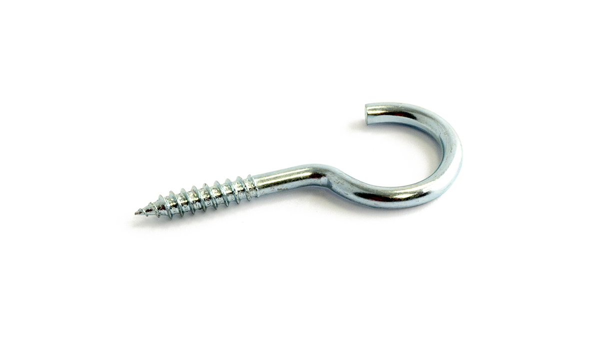 Sinkitty tai valkoiseksi maalattu kattokoukku. Ilmoitettu pituus tarkoittaa koukun kokonaispituutta.