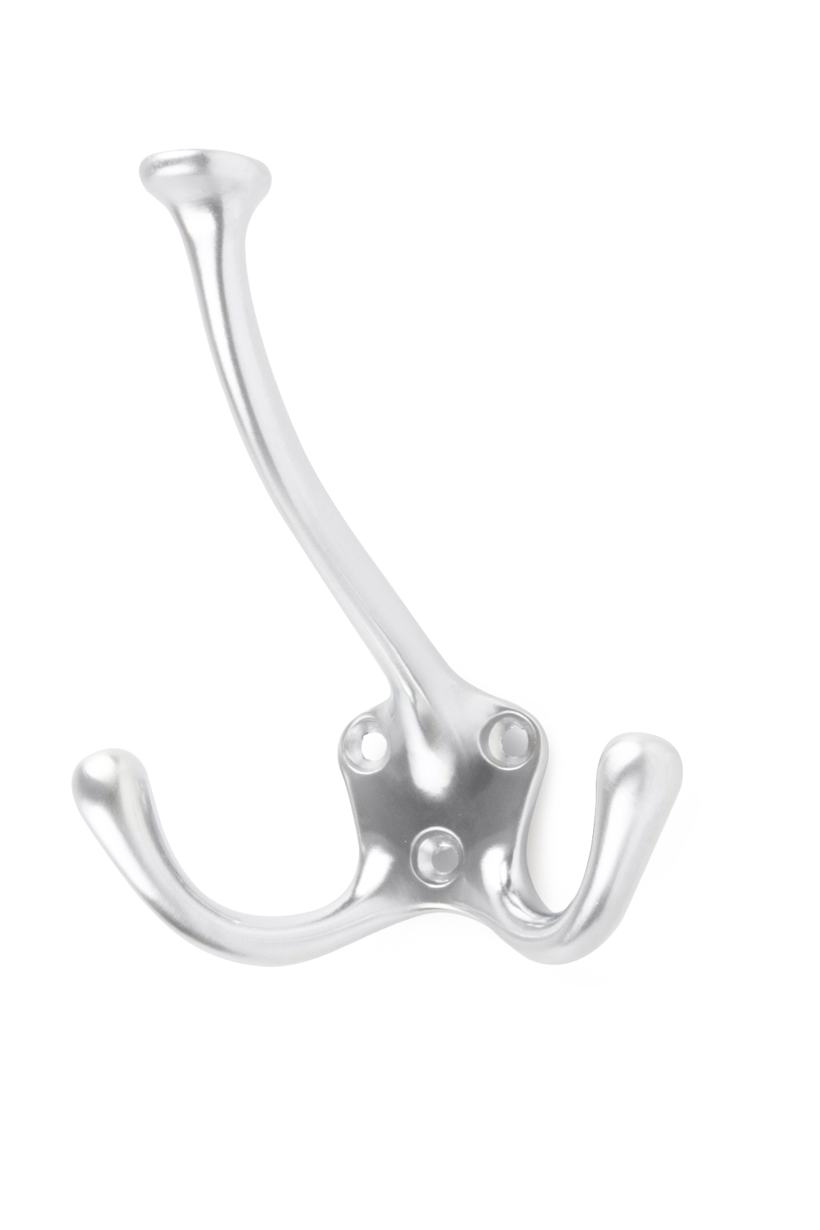 Koukku sinkkiä/samakkia, pinta harjattua kromia. Kolme koukkua antaa reilusti ripustustilaa.