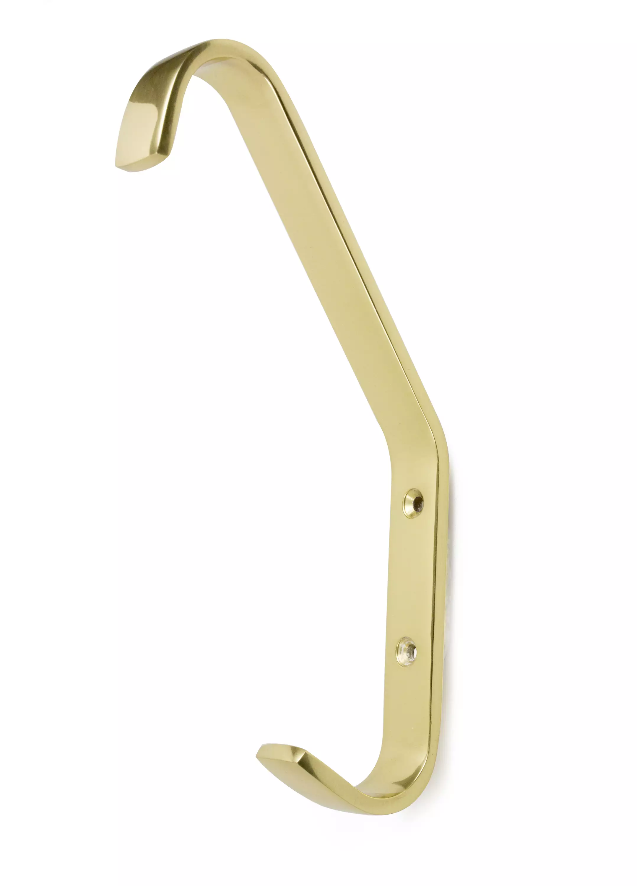 Klassinen kaksoiskoulukoukku tyylikkäästi messingin värisenä.