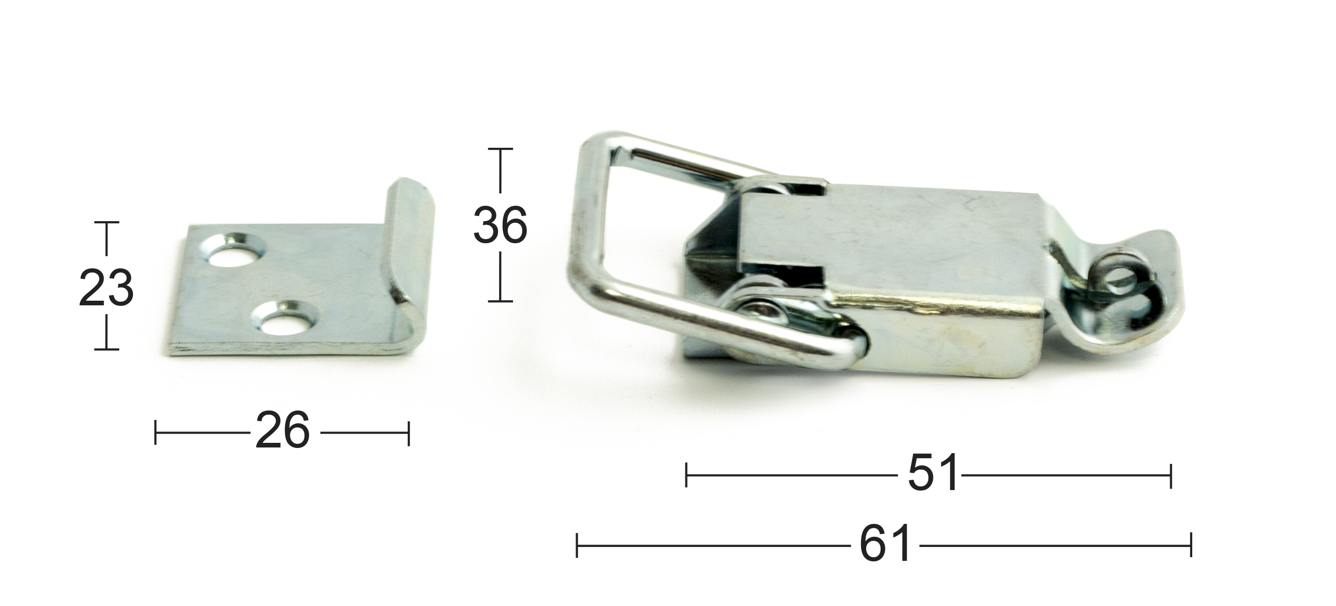 Vastakappaleen ja ruuvit sisältävä sinkitty laatikonsalpa.
