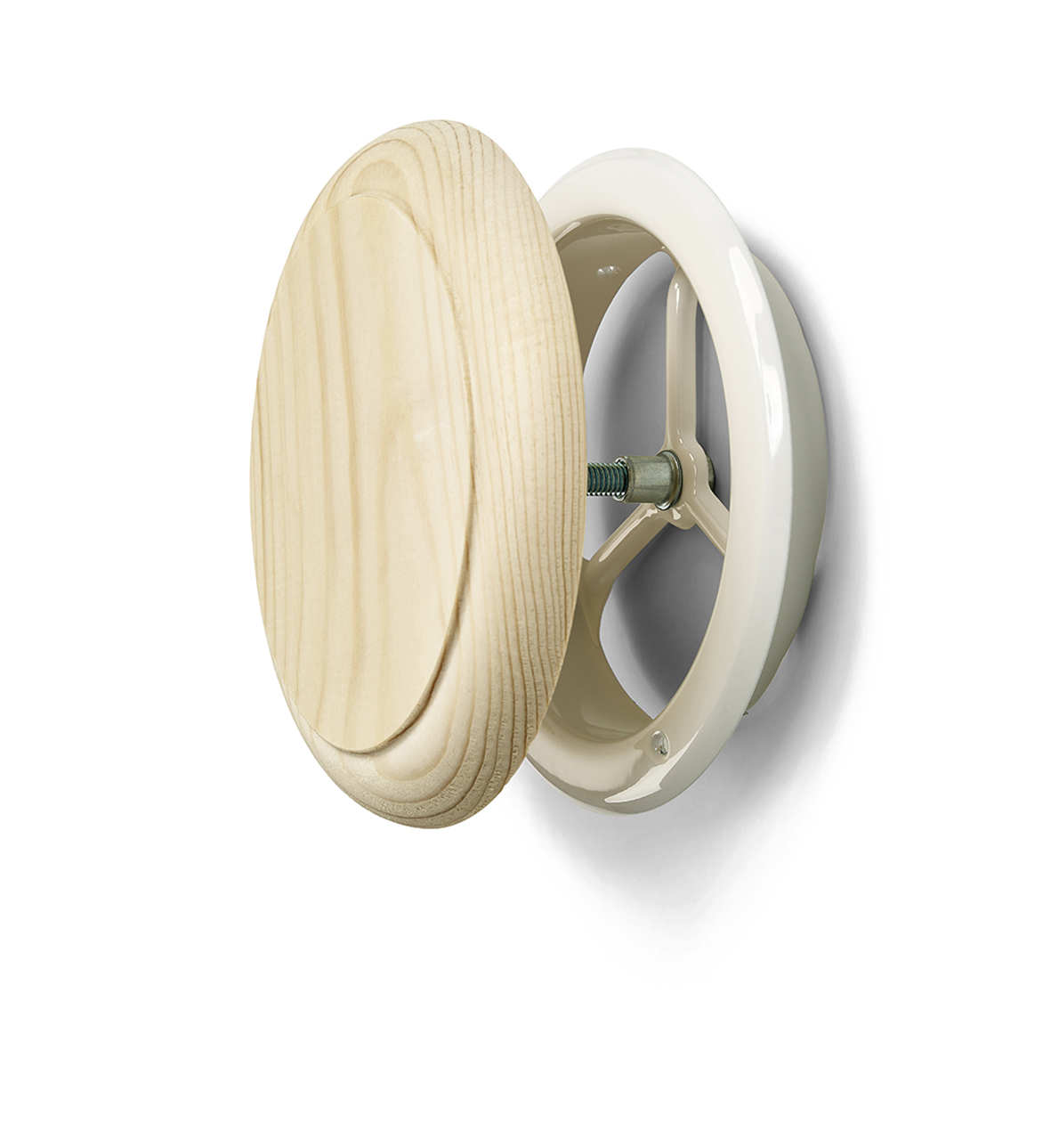 Lautasventtiili teräksestä ja puusta.