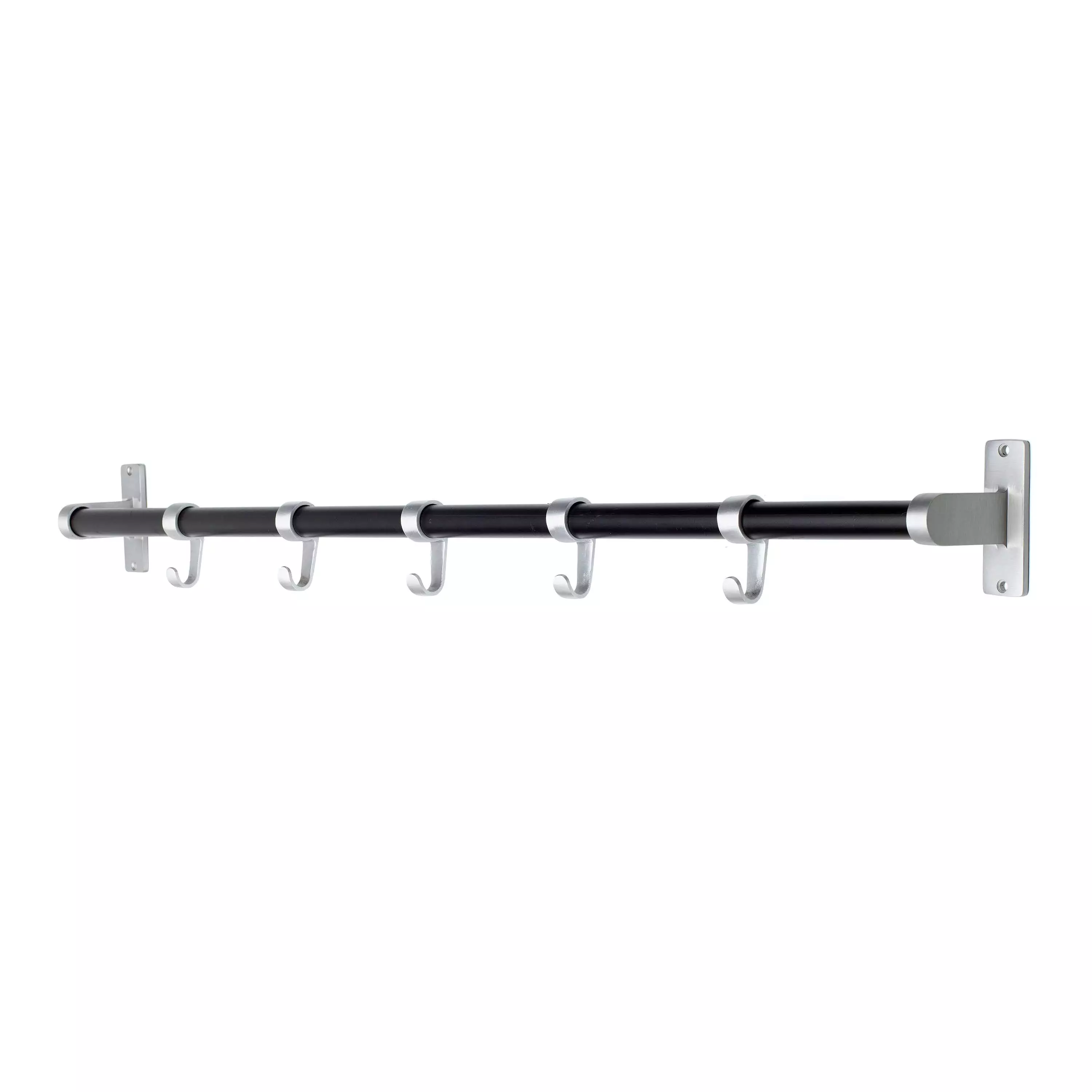 Perinteinen 5-koukkuinen naulakko modernilla muotoilulla - mustaksi maalattua puuta, koukut sinkkiä/samakkia - soveltuu eteiseen, vaatehuoneeseen, makuuhuoneeseen jne. - leveys 560 mm - taustan...