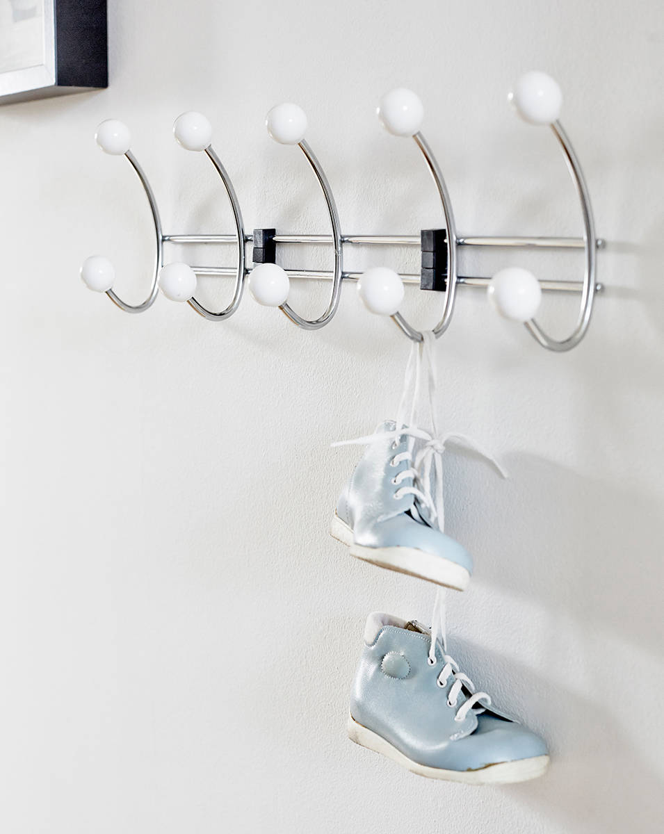 Sopii yhtä hyvin lastenhuoneeseen kuin eteiseenkin. Naulakko, jossa reilusti tilaa vaatteille, käsineille, pusseille jne.