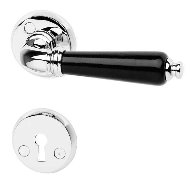 Ovenpainike ja avainkilpi messingistä. - musta kahvaosa alumiinia - sopii 38-42 mm vahvuisiin oviin - ulkonema 60 mm - mitat 220 x 170 x 50 mm