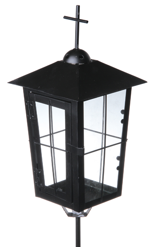 metallinen hautalyhty risti-koristeella - 13x13x27/58cm - irti ruuvattava metallivarsi