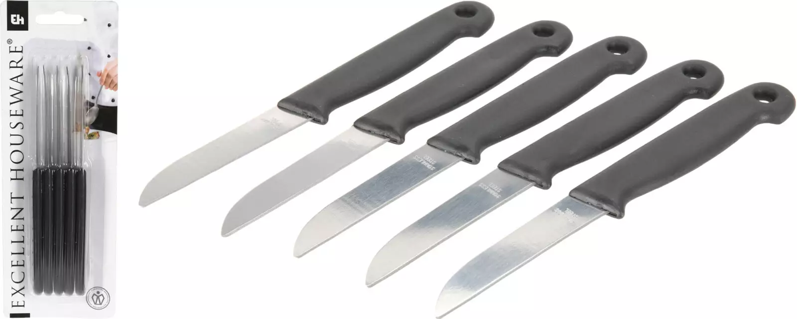 pakkauksessa 5 kpl edullista muovikahvaista hedelmäveistä