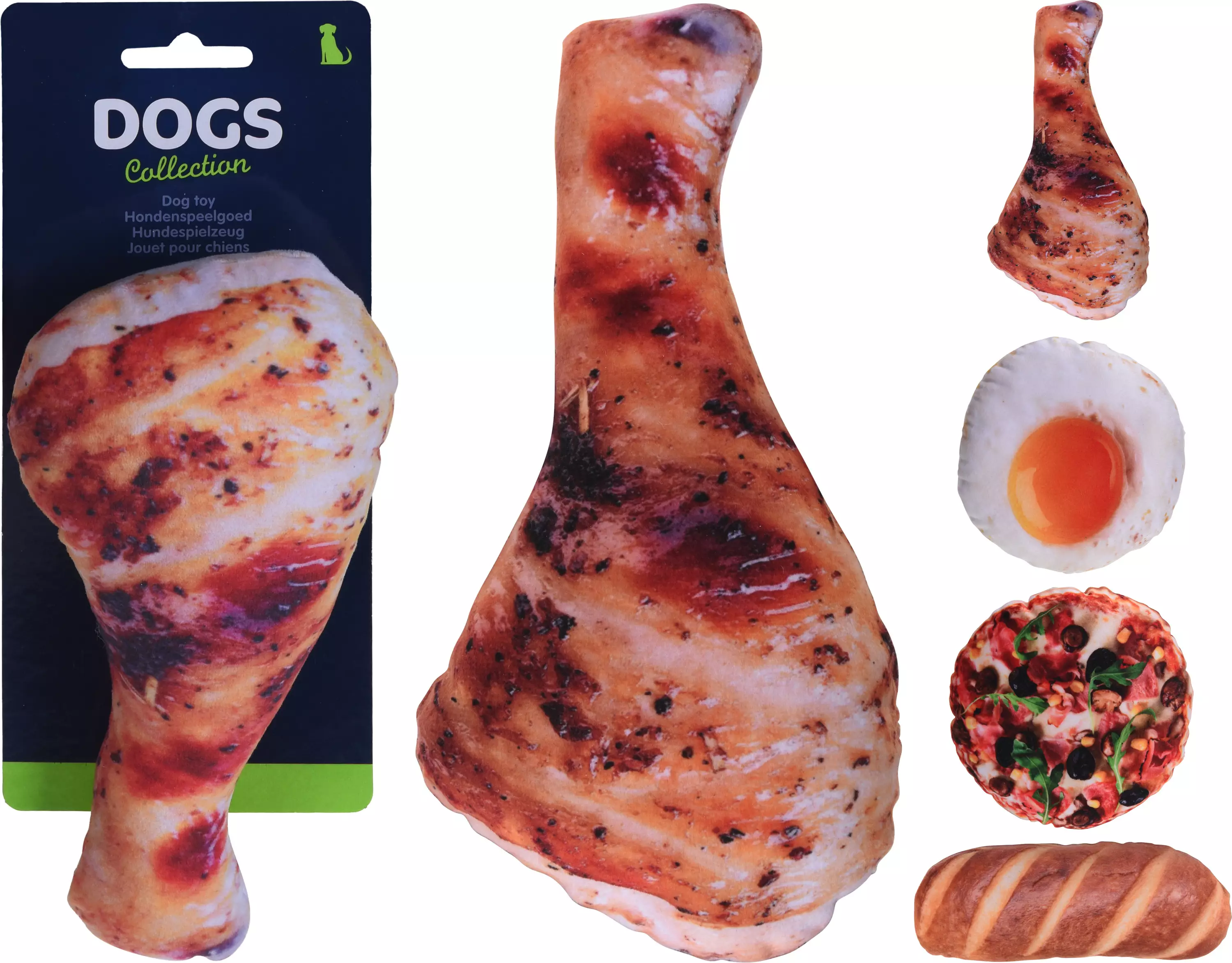 Koiran vinkuva pehmolelu - lajitelmassa erinäköisiä herkkuja, joista tilatessasi saat sattumanvaraisesti jonkin - koko n. 18 cm - pehmeää kangasta