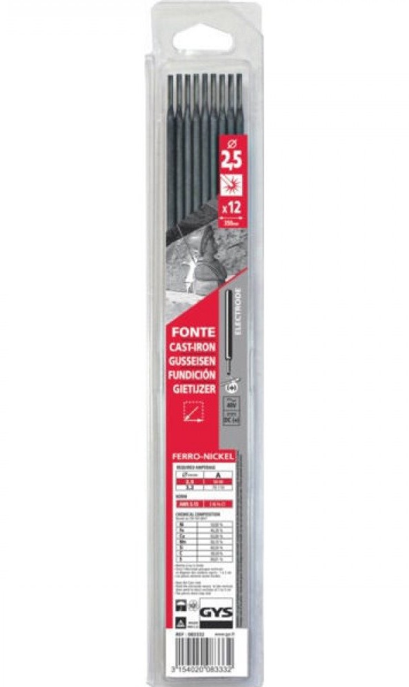 Hitsauspuikko, GYS, valurauta, ø 2,5 x 350 mm, 12 kpl