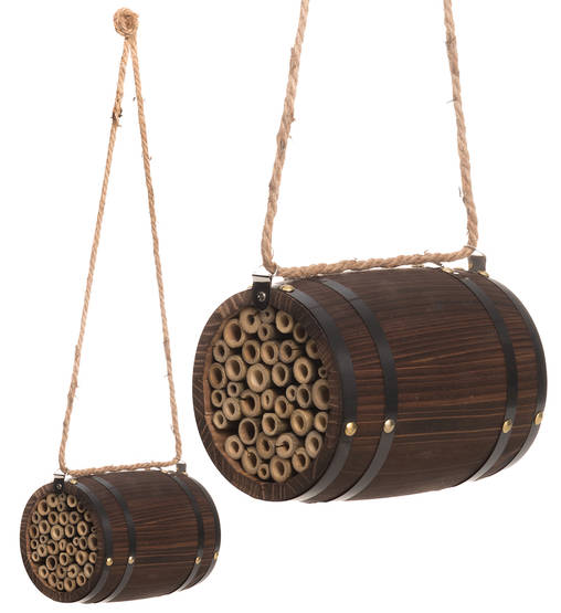 Tynnyrin muotoinen hyönteishotelli, joka tarjoaa pihan hyötyhyönteiselle pesintätilan ja turvallisen talvehtimismahdollisuuden. - sisältää ripustusköyden - mitat: 15 x 18 x 15 cm - materiaali:... Lue lisää
