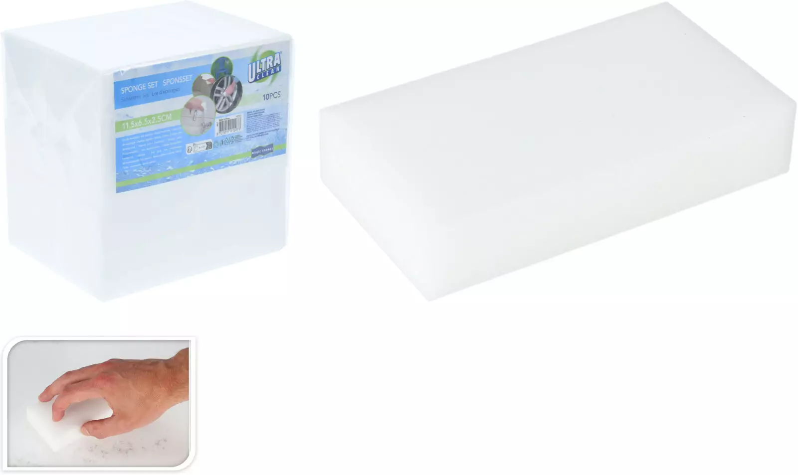 valkoinen taikasieni, joka poistaa kätevästi monenlaisia hankaliakin tahroja - yhden sienen koko 11,5x6,5x2,5 cm - pakkauksessa 10 sientä