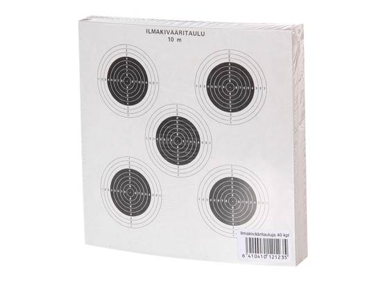Ilmakivääritaulu "virallinen" - koko 14x14cm - 5 pientä maalitaulua, joiden halkaisija 45mm - valmistettu Suomessa