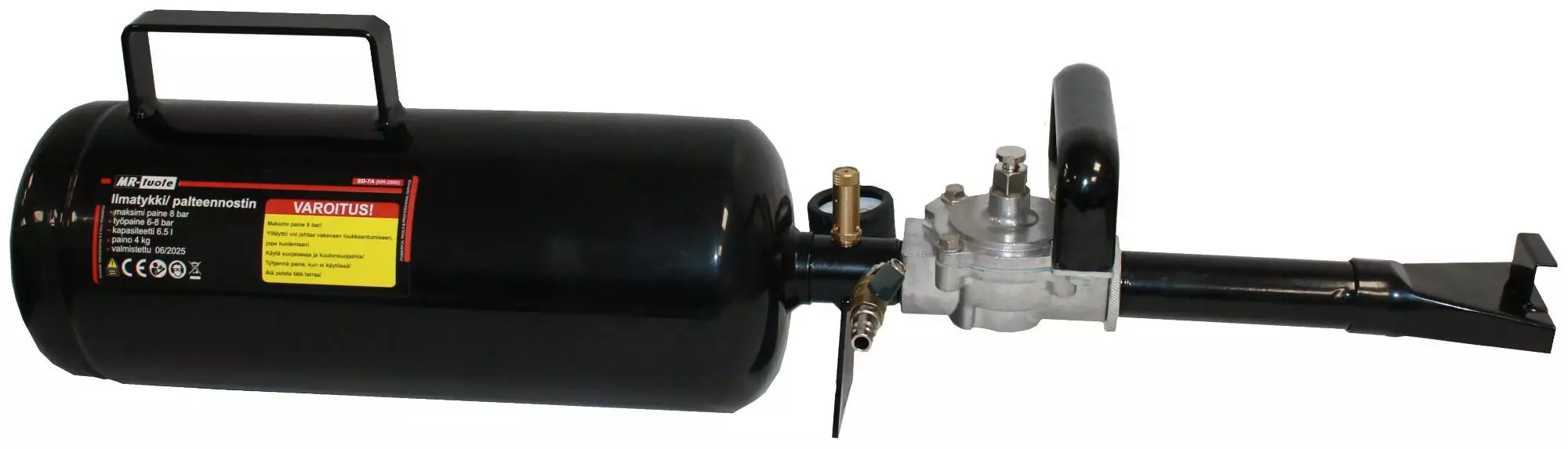 - varustettu pneumaattisella ohjausventtiilillä, varoventtiilillä, suuttimella, painemittarilla ja tulopalloventtiilillä