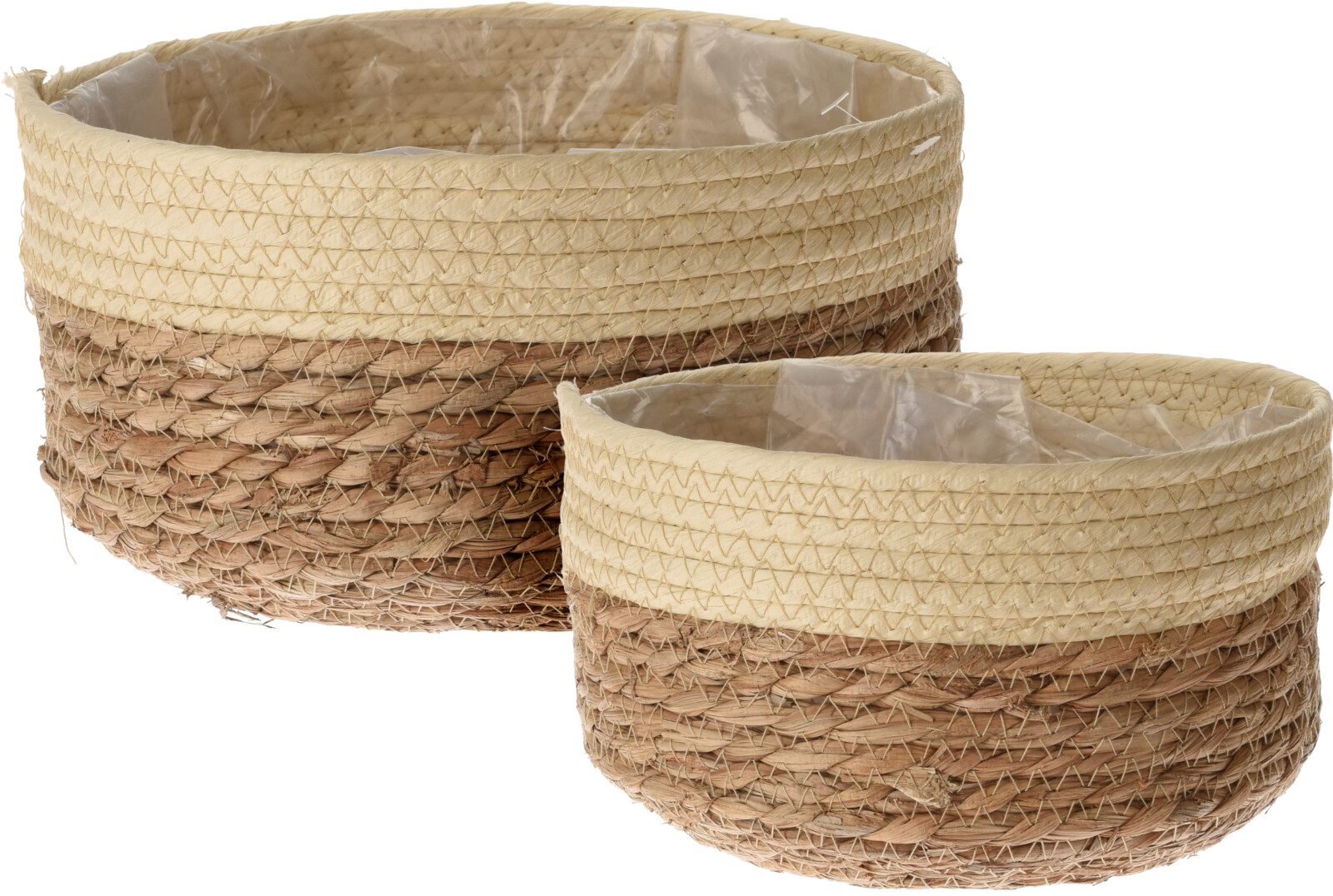 Punottu istutusruukku - sisäpuolella muovitus - korkeus 14 cm - halkaisija 25 cm - kuvassa ruukuista suurempi