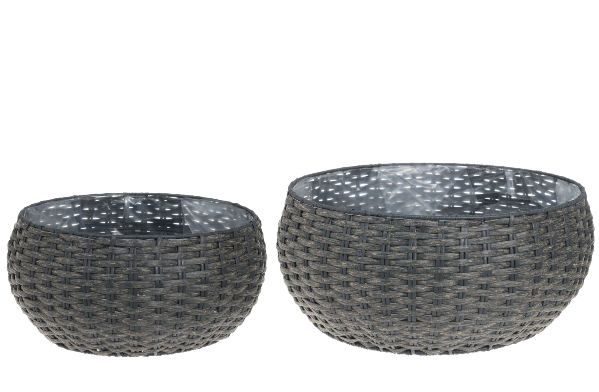 Tyylikäs ja kestävä polyrottinkinen istutuskori sopii niin sisä- kuin ulkokäyttöönkin. - korin sisäpuoli on muovitettu Saatavana 2 kokoa: * pieni (34x34x16 cm) * iso (42x42x18 cm)... Lue lisää