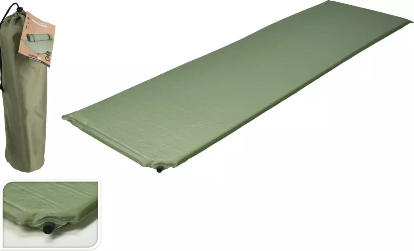 Itsestääntäyttyvä makuualusta - kiinteät kiristyshihnat - pakattuna säilytyspussiin, koko n. 50 x 13 cm - paino 905 g - mitat avattuna 183 X 51 X 2,5 cm