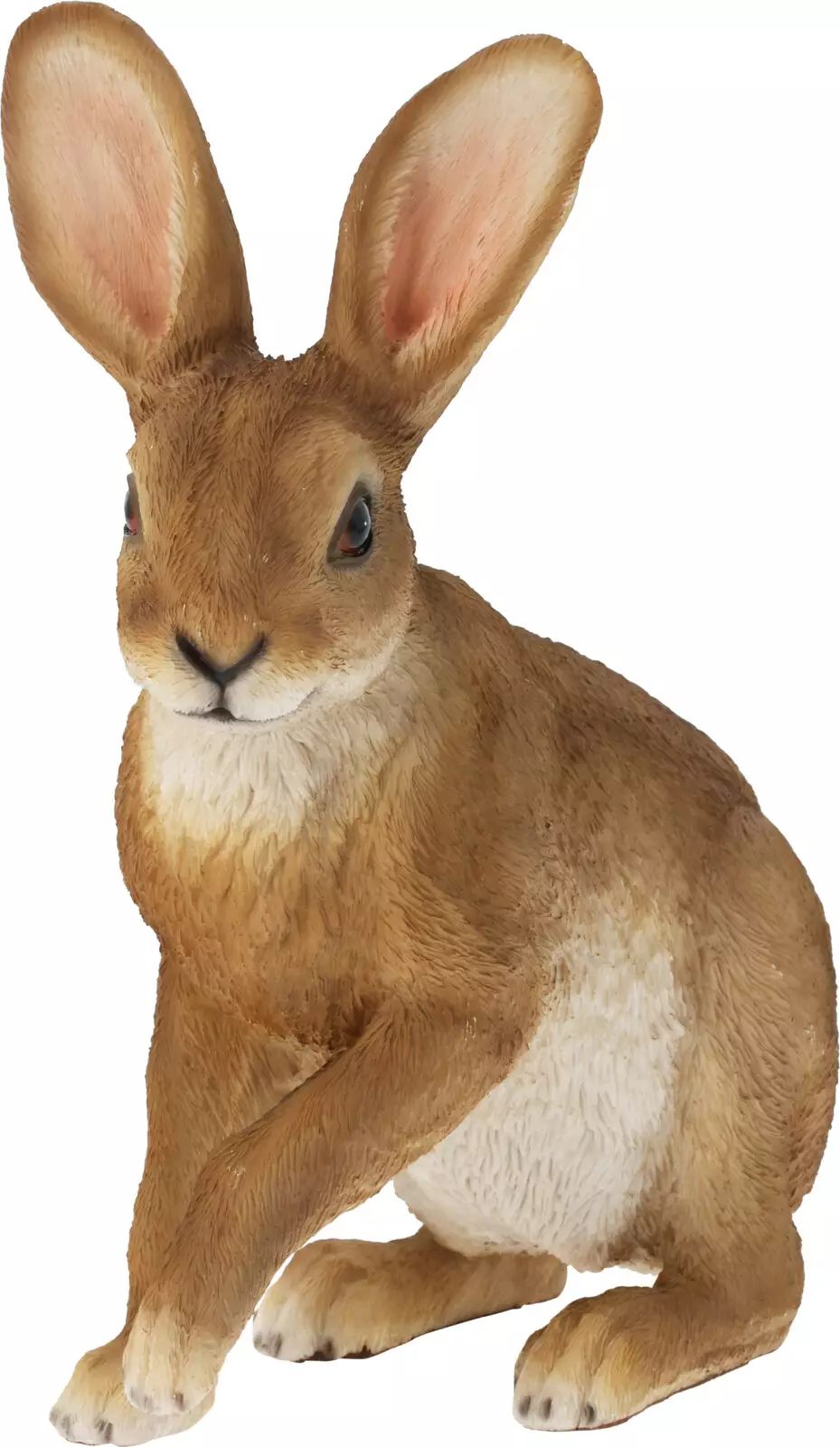 Jänis patsas - mitat: 21x11x28 cm - matriaali Polyresin - säänkestävä, mutta kannattaa talveksi ottaa sisälle