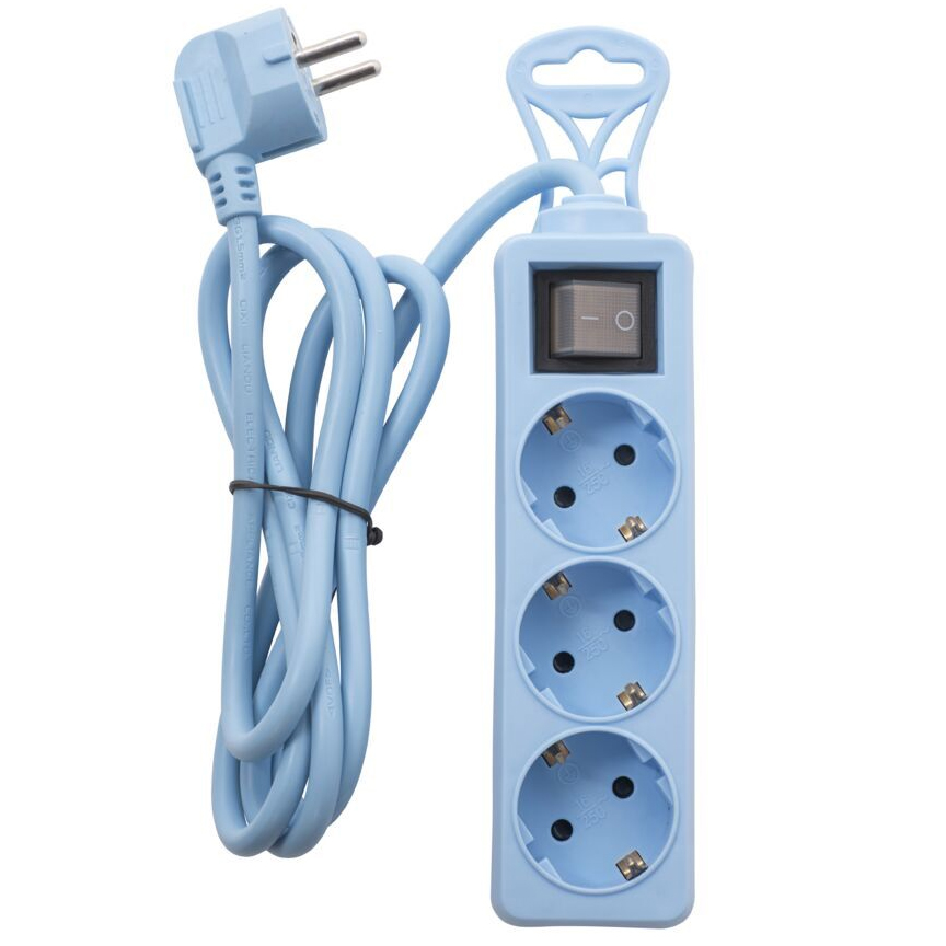 3-osainen jatkojohto - Vain sisäkäyttöön - Kotelointiluokka IP20 - H05VV-F 3 x 1,5 mm² - On/off-kytkin ja merkkivalo - Maksimikuorma 3680W