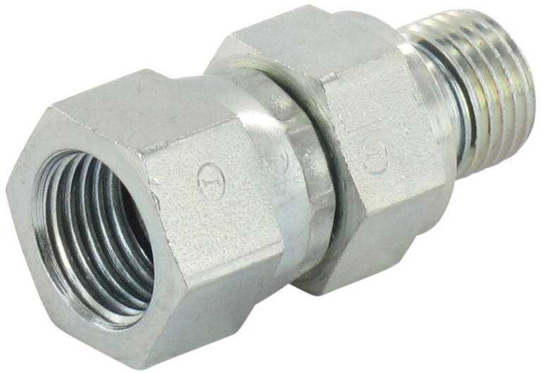 Jatkoliitin 1/2" (JIC) naaras- ja 1/4" (BSP) urosliittimellä. - kierrepituudet: 20,5/10 mm - pituus: 41 mm - nimellispaine: 380 bar - galvanoitua terästä
