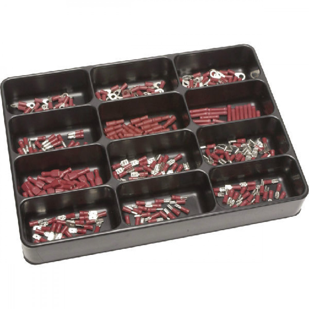 Kaapelikenkälajitelma punaiset Sisältö: - 25 kpl 2,8 mm pun lattaliitintä - 25 kpl 4,8 mm pun lattaliitintä - 25 kpl 6,3 mm pun lattaliitintä - 25 kpl 6,3 mm pun lattaliitintä, eristetty - 25... Lue lisää